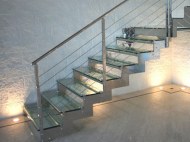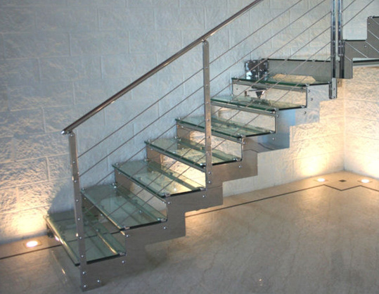 Steklene stopnice izdelujemo iz pohodnega stekla, ki je največkrat sestavljeno iz treh slojev stekla, pri katerem je eno-zgornje steklo obvezno kaljeno, saj opravlja zaščitno funkcijo. Debelina stekla je odvisna od tipa montaže, čemu so pohodne površine namenjene ter, kakšna bo obremenitev površine.
