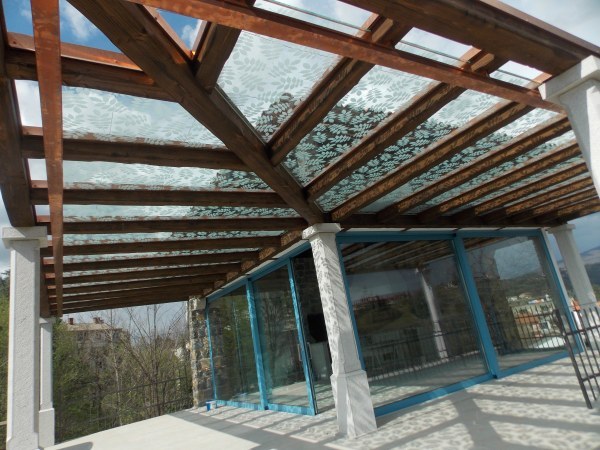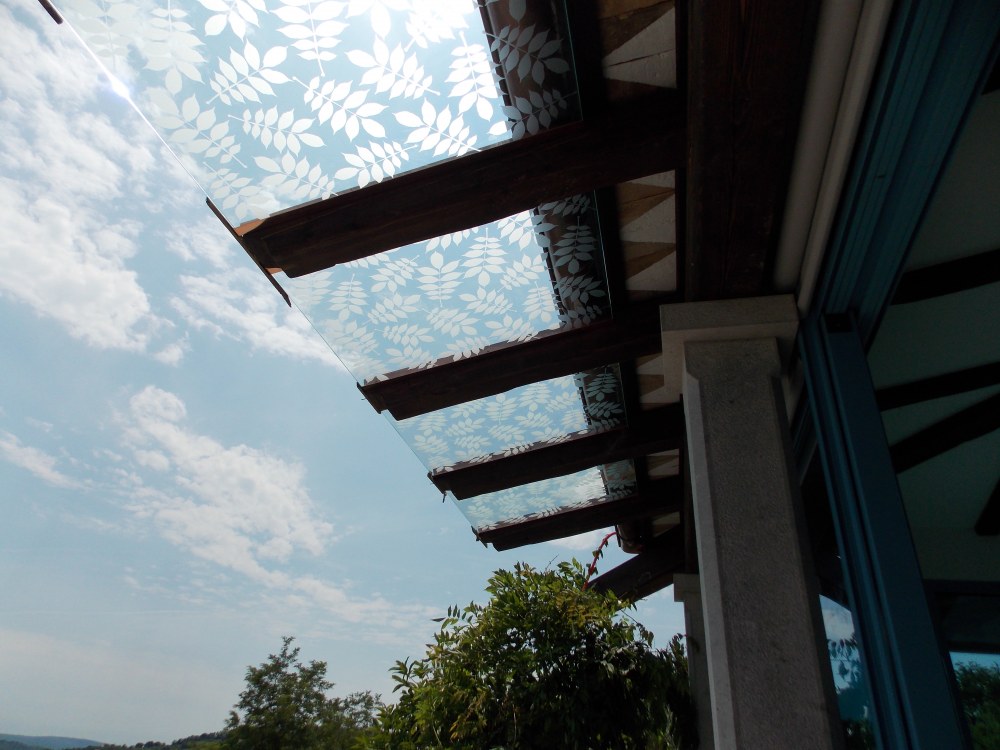 Stekleni nadstreški so izdelani po meri iz kaljenega ali lepljenega stekla ali pa kombinacije obojega. Čeprav so izdelani iz stekla, so izjemno trpežni. Stavbi dajo izjemno moderen, eleganten in dovršen videz. Če se stranka odloči za nadstrešek iz stekla se oglasimo na ogledu, kjer dorečemo tip stekla ter ustrezno okovje oziroma profile za montažo. Poleg tega lahko na izbrano steklo peskamo ali graviramo različne vzorce.
